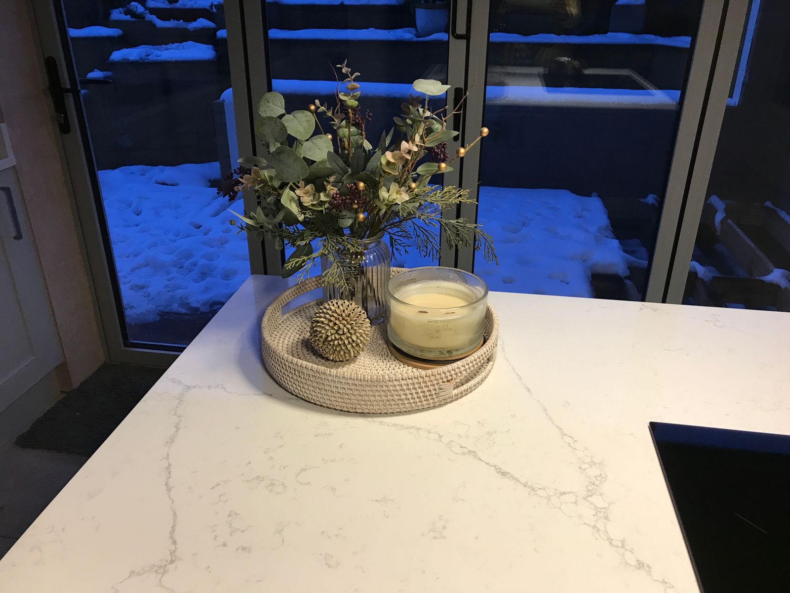Beautiful white rattan tray, great quality and lovely to display items on my counter top!